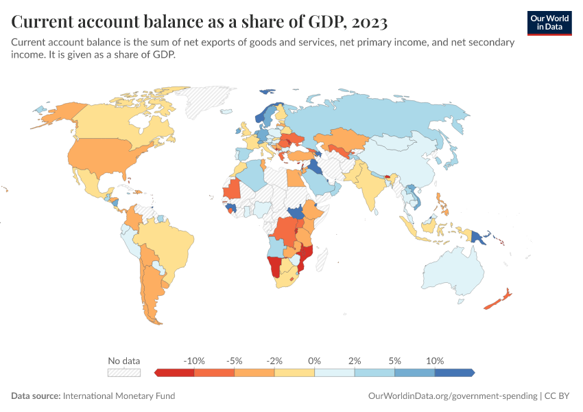 “Data Page: Current account balance as a share of GDP”. Our World in Data (2026). Data adapted from International Monetary Fund. Retrieved from https://region-dods-income-groups.owid.pages.dev/grapher/current-account-balance-as-a-proportion-of-gdp [online resource]How to cite this data