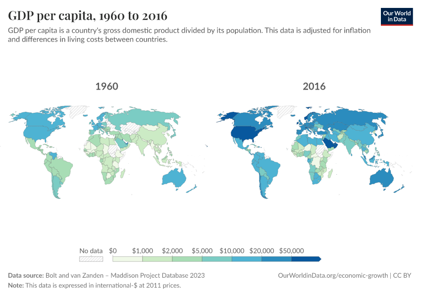 “Data Page: GDP per capita”, part of the following publication: Max Roser, Bertha Rohenkohl, Pablo Arriagada, Joe Hasell, Hannah Ritchie, and Esteban Ortiz-Ospina (2023) - “Economic Growth”. Data adapted from Bolt and van Zanden. Retrieved from https://region-dods-income-groups.owid.pages.dev/grapher/gdp-per-capita-maddison-project-database [online resource]