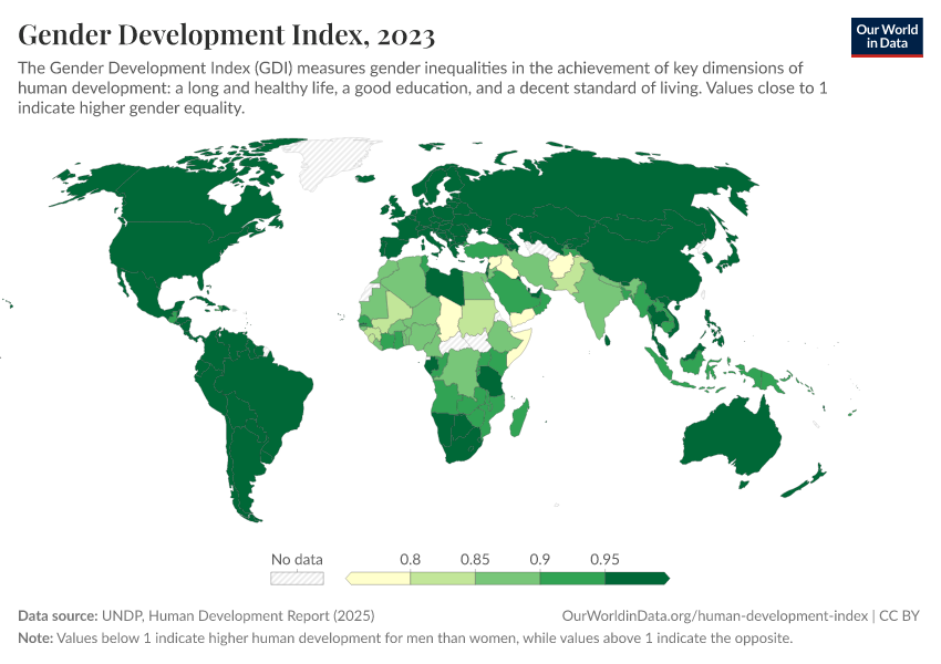 “Data Page: Gender Development Index”. Our World in Data (2026). Data adapted from UNDP, Human Development Report. Retrieved from https://region-dods-income-groups.owid.pages.dev/grapher/gender-development-index [online resource]How to cite this data
