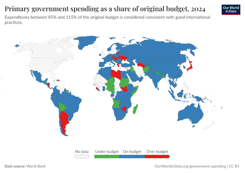 “Data Page: Primary government spending as a share of original budget”. Our World in Data (2026). Data adapted from World Bank. Retrieved from https://region-dods-income-groups.owid.pages.dev/grapher/govt-expenditure-share-budget [online resource]How to cite this data