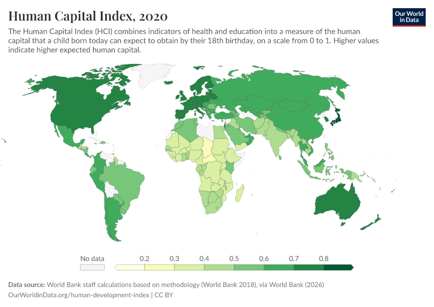 “Data Page: Human Capital Index”. Our World in Data (2026). Data adapted from World Bank staff calculations based on methodology (World Bank 2018), via World Bank. Retrieved from https://region-dods-income-groups.owid.pages.dev/grapher/human-capital-index-in-2018 [online resource]How to cite this data