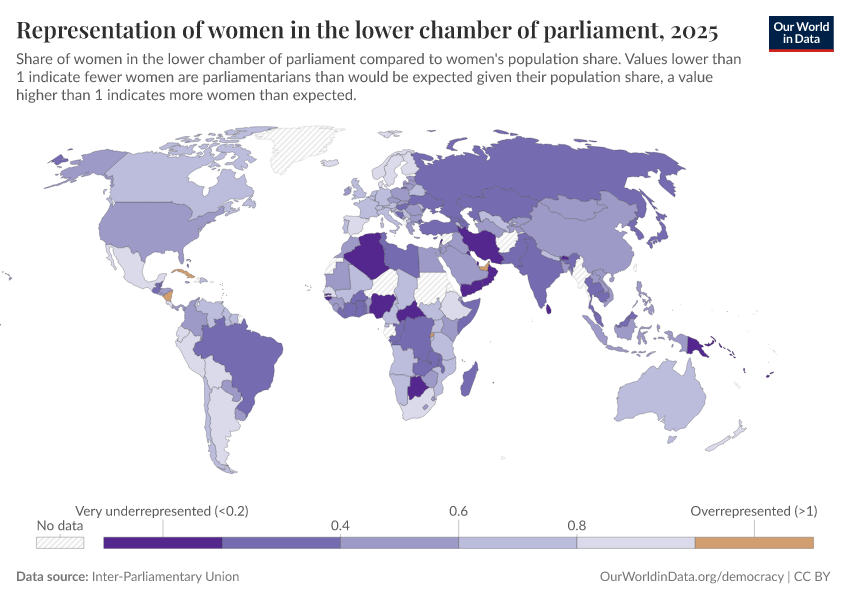 “Data Page: Representation of women in the lower chamber of parliament”. Our World in Data (2026). Data adapted from Inter-Parliamentary Union. Retrieved from https://region-dods-income-groups.owid.pages.dev/grapher/representation-of-women-in-lower-chamber-of-parliament [online resource]How to cite this data