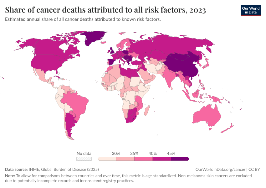 Share of cancer deaths attributed to all risk factors