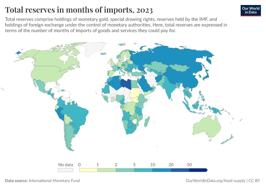 “Data Page: Total reserves in months of imports”. Our World in Data (2026). Data adapted from International Monetary Fund. Retrieved from https://region-dods-income-groups.owid.pages.dev/grapher/total-reserves-in-months-of-imports [online resource]How to cite this data
