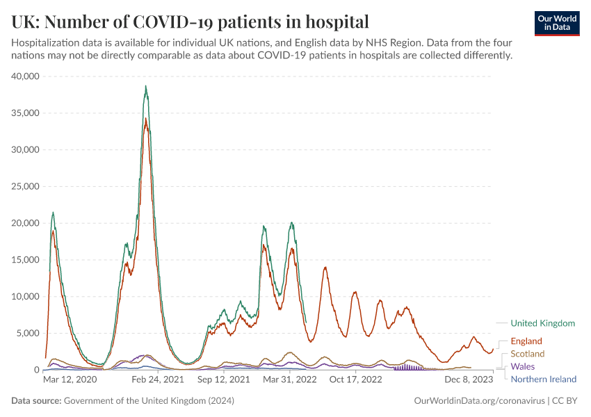 Government of the United Kingdom (2024) – with minor processing by Our World in Data. “UK: Number of COVID-19 patients in hospital” [dataset]. Government of the United Kingdom, “UKHSA data dashboard” [original data]. Retrieved February 26, 2026 from https://region-dods-income-groups.owid.pages.dev/grapher/uk-covid-hospital-patients