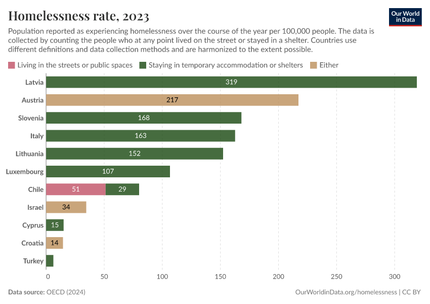 Bastian Herre and Pablo Arriagada (2024) - “Homelessness” Published online at OurWorldinData.org. Retrieved from: 'https://region-dods-income-groups.owid.pages.dev/homelessness' [Online Resource]BibTeX citation
