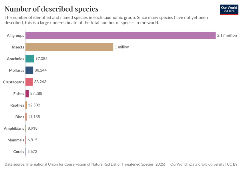Hannah Ritchie (2022) - “How many species are there?” Published online at OurWorldinData.org. Retrieved from: 'https://region-dods-income-groups.owid.pages.dev/how-many-species-are-there' [Online Resource]BibTeX citation