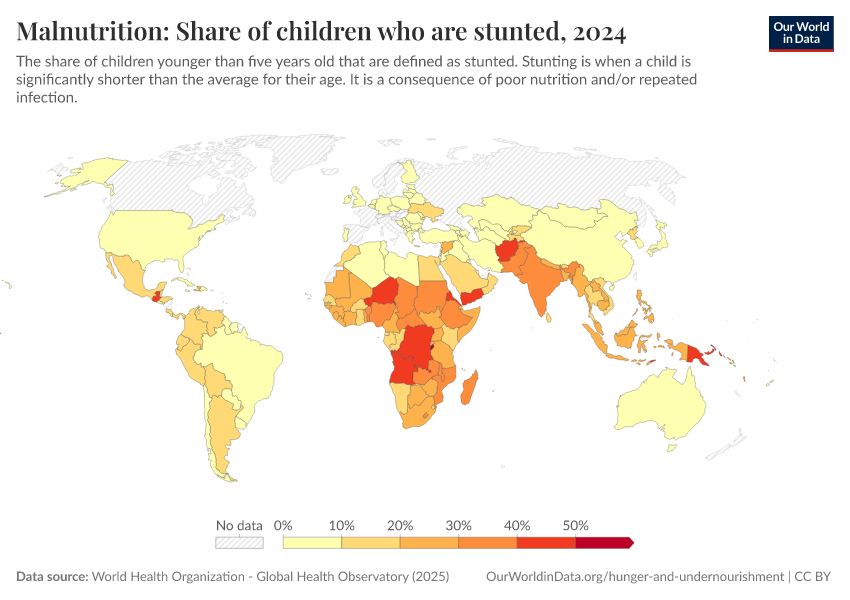 On this page, you can find our data, visualizations, and writing on hunger and undernourishment. It looks at how many people are undernourished, where they are, and other metrics used to track food security.