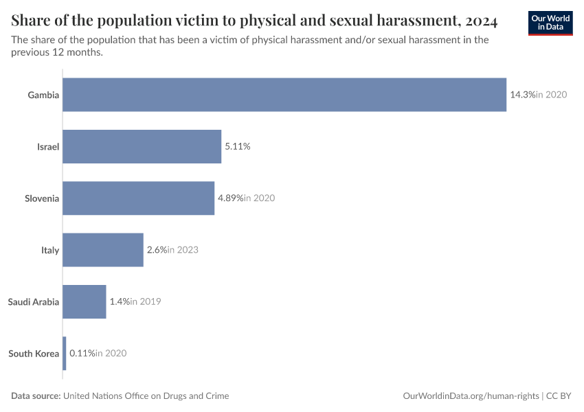 Definition of the SDG indicator: Indicator 11.7.2 is the “proportion of persons victim of physical or sexual harassment, by sex, age, disability status and place of occurrence, in the previous 12 months” in the UN SDG framework.