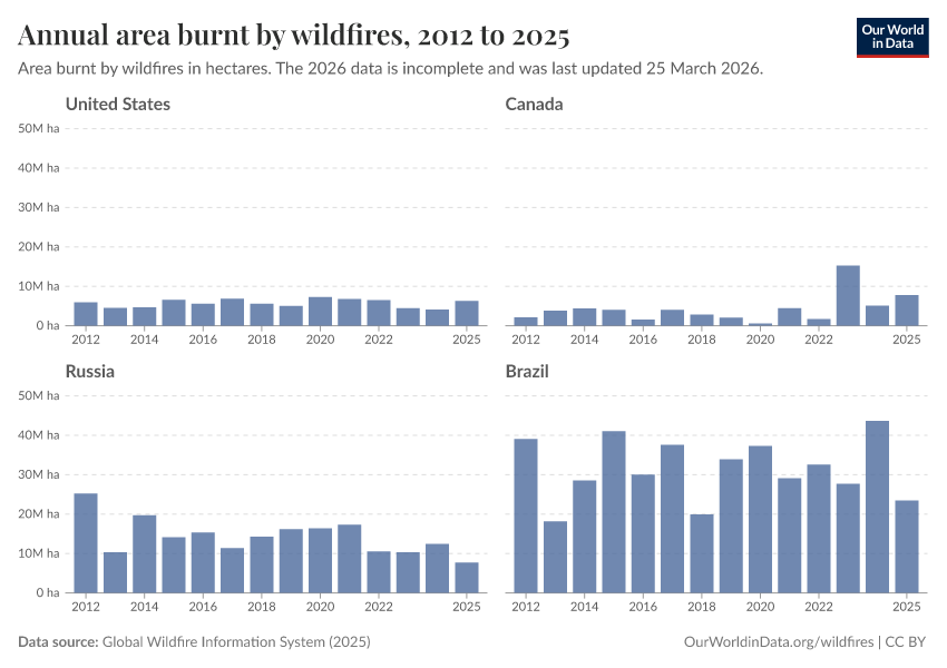 Veronika Samborska and Hannah Ritchie (2024) - “Wildfires” Published online at OurWorldinData.org. Retrieved from: 'https://region-dods-income-groups.owid.pages.dev/wildfires' [Online Resource]BibTeX citation